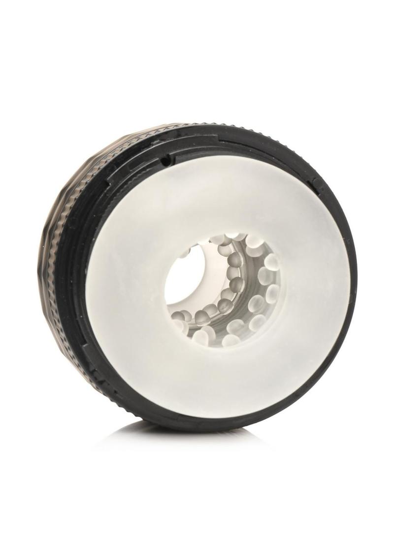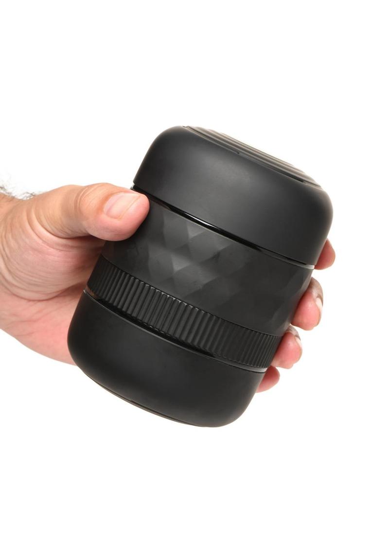 Customize your fit with this tightening masturbator! This stretchy, soft, TPE tunnel sits inside of a plastic case and can be adjusted to get smaller or larger for your shaft size and preference. Choose between 8 different tightness settings by turning the ring around the case to larger or smaller. Inside the tunnel are textured nubs that add to the sensation! Enjoy using it with the cap on one side or take it off for a cum-thru tip! Clean it up by rinsing it out and using mild soap and warm water, then letting it air-dry. Put both caps back on to keep dust and debris out. The case also provides a good grip so you can hold on easily as you stroke yourself with lots of lube! Only use water-based or silicone lubricants for best results.