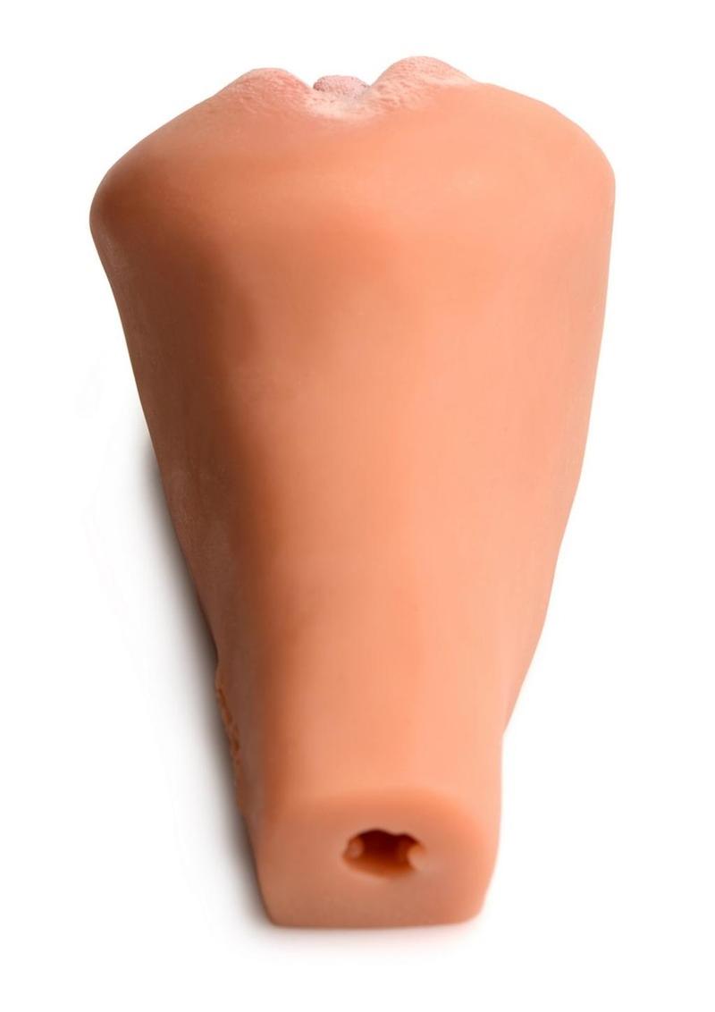 Grab your favorite water-based lubricant and squirt some inside her tunnel, then use the rest on yourself. Slide the tip of your dong in, then use your hand to guide the shaft in. As the ridges and nubs grip your shaft and massage and squeeze you, enjoy the pressure control from your hand as you stroke. Close your eyes, lay back, and enjoy the fantasy!